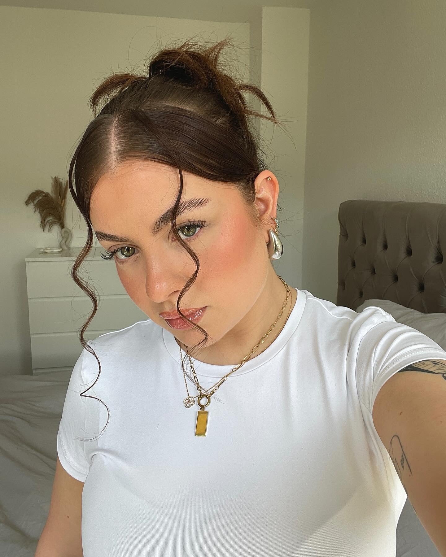 9. Brünette Halb-up mit losen Gesichtscurls (Baddie Frisuren)Kredit