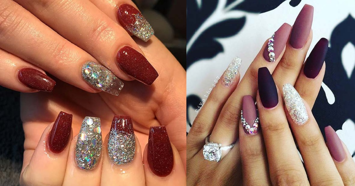 Es ist unmöglich, Winternageldesigns zu entwickeln, ohne Glitzer einzubeziehen! Glitzer ist ideal für den Winter, insbesondere wenn Weihnachten und der Beginn des neuen Jahres nähern. Der nächste Nagel, den wir Ihnen zeigen, ist die rote Bordeaux -Farbe mit silbernen Akzentnägeln. Diese Nägel sind ideal für Partys.