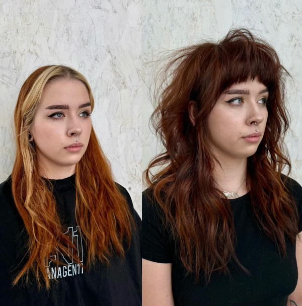Dieser Stil bietet Kupfer-, lange, abgehackte Schichten und bietet eine zeitlose Rock’n’Roll-Atmosphäre. Es ist perfekt für diejenigen, die einen entspannten, aber nervösen Look wollen. Frisur: @aaashleee.