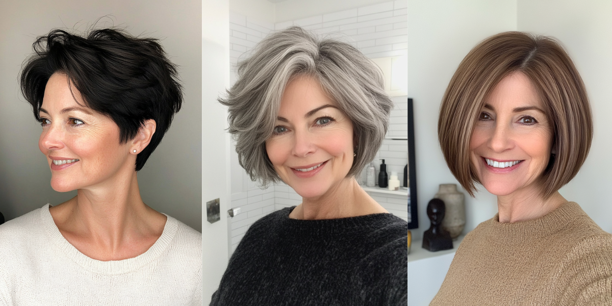 Ein weicher, gefiederter Pixie -Schnitt fügt Volumen hinzu, während ein leichtes, luftiges Gefühl beibehält. Dieser Stil funktioniert wunderbar mit Silber- oder Salz-und-Prepper-Haaren und verbessert natürliche graue Töne.