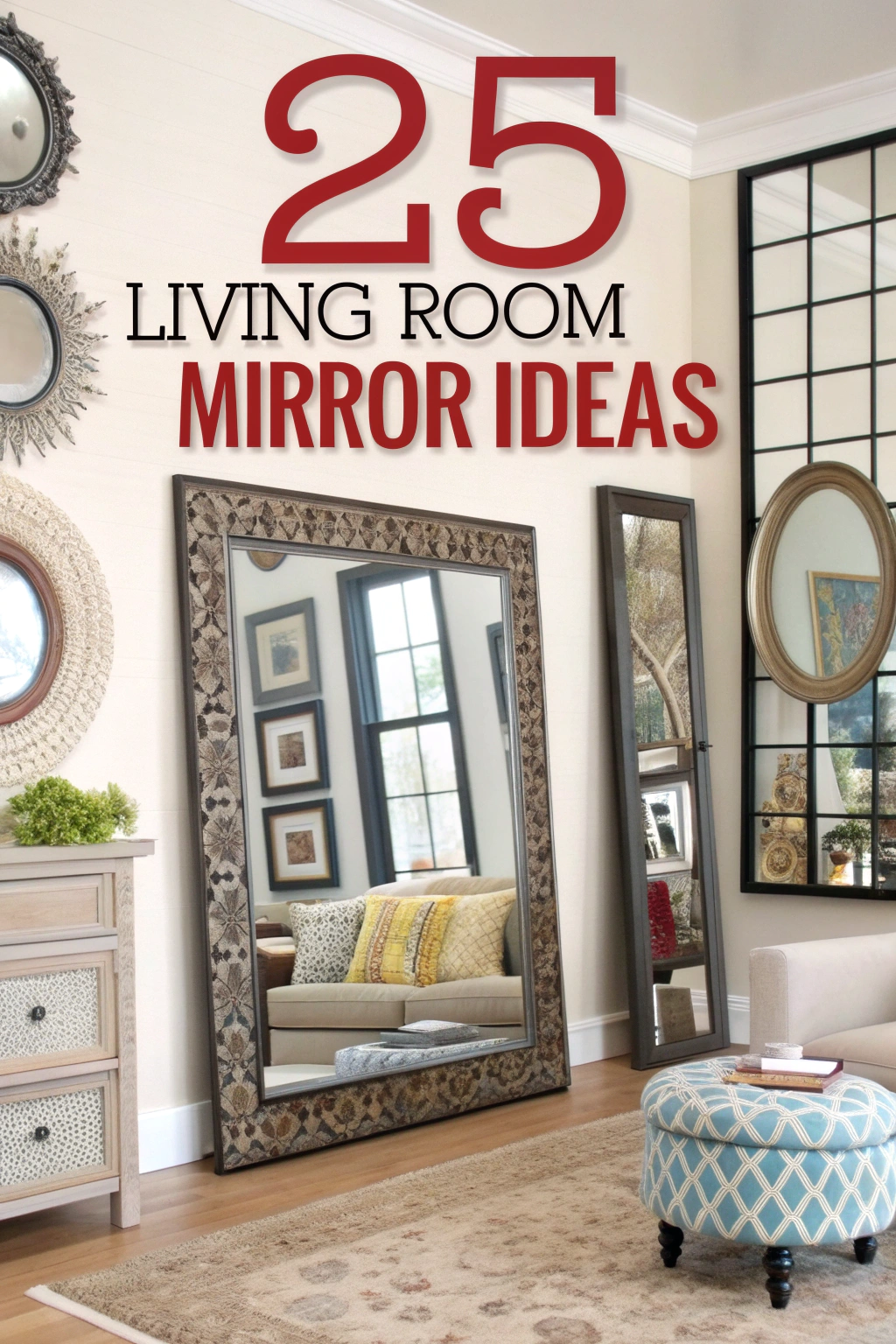 Wir haben 25 atemberaubende Spiegelideen zusammengefasst, die jedem Geschmack und Stil gerecht werden. Egal, ob Sie eine minimalistische Atmosphäre, einen böhmischen Hafen oder einen klassischen Rückzugsort anstreben, Sie werden Inspiration finden, Ihr Wohnzimmer auf neue Höhen zu bringen. Lassen Sie uns eintauchen und über die Möglichkeiten nachdenken!
