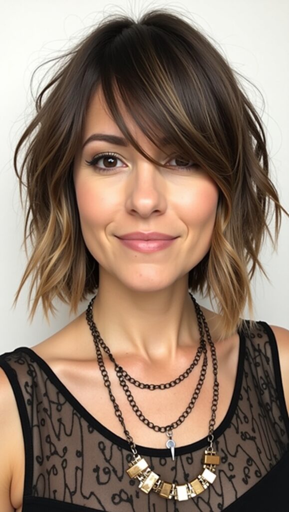 Diese Schritte helfen Ihnen dabei, einen polierten, aber verspielten Look zu erzielen, der die einzigartige Textur Ihrer abgehackten Lob -Frisur hervorhebt!
