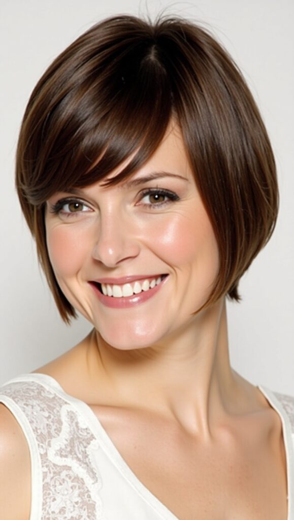 Am besten für: Frauen mit runden oder herzförmigen Gesichtern und diejenigen, die nach einem eleganten und dennoch modernen Twist auf einem klassischen Schnitt suchen.