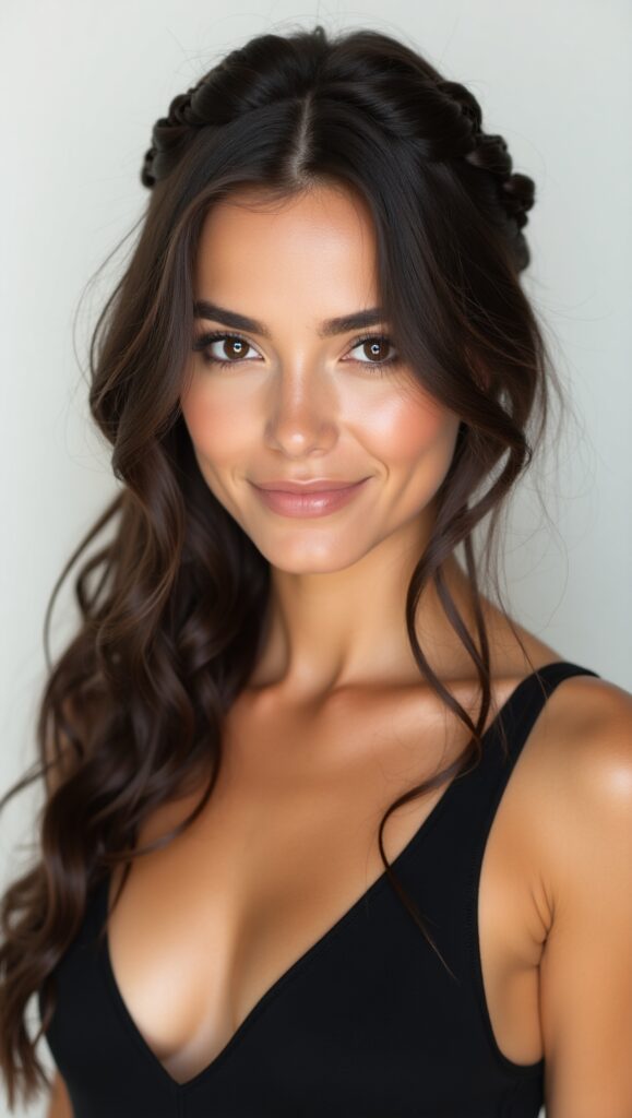 Kurzbeschreibung: Ein tiefes Seitenteil mit schlanken Schichten für einen weichen, glamourösen Look.