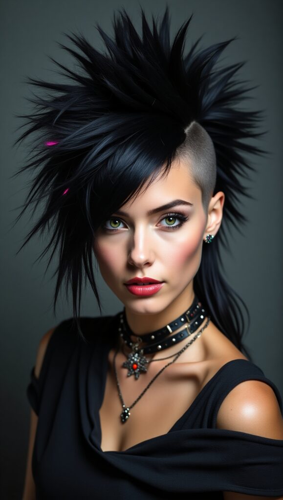 Kurzbeschreibung: Ein heftiger Mohawk mit Kitty -geschnittenen Schichten für eine Rockstar -Kante.