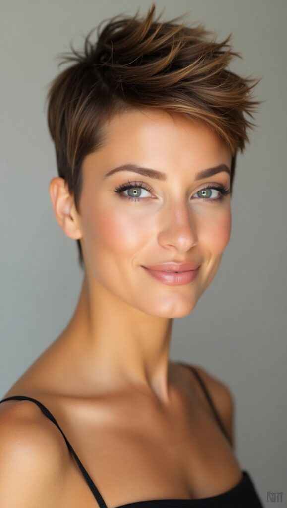 Am besten für: Mutige Frauen, die nach einer Pixie mit mehr Persönlichkeit und Spaß suchen.