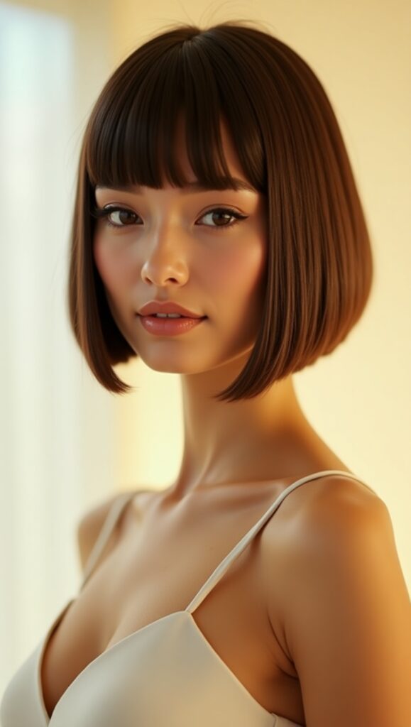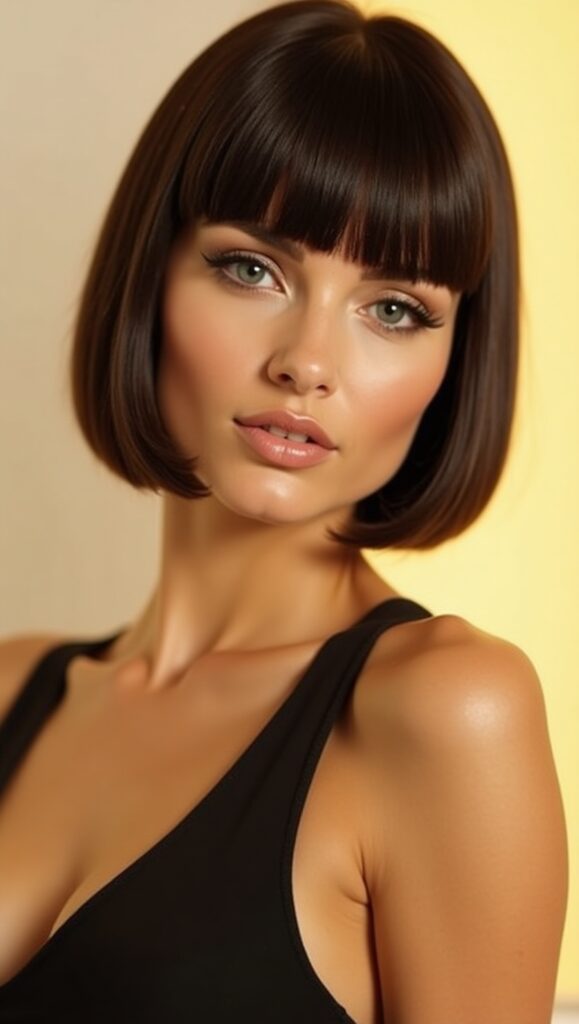 Kurzbeschreibung: Ein zeitloser, schlanker Bob mit scharfen Kanten und einem Hauch von Lautstärke an den Enden.