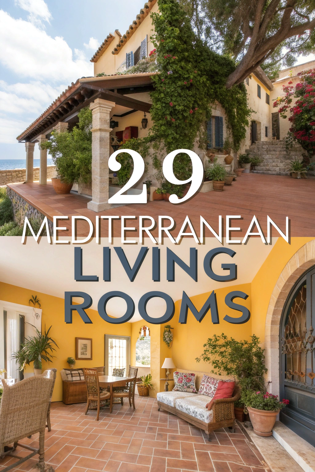 Dieses Wohnzimmer kombiniert rustikale Bauernhauseelemente nahtlos mit mediterranem Flair. Denken Sie an exponierte Holzbalken, Vintage -Möbel und viel natürliches Licht.