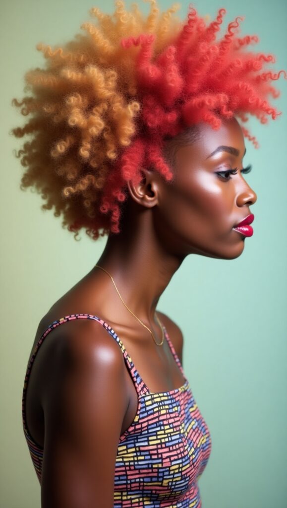 - Beschreibung: Ein klassischer Afro mit lebendiger Farbe (z. B. Blonde, Rot oder Pastell), ein mutiges, personalisiertes Flair hinzufügen.