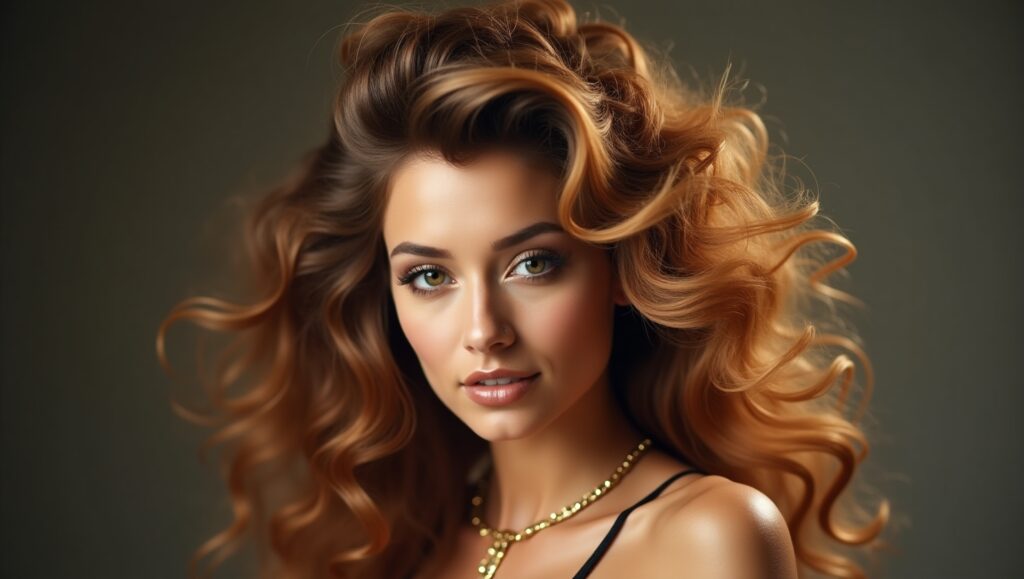 Gehen Sie groß mit voluminösen, kurzen Schichten an der Krone und langen Ranken. Kombiniere mit subtilen Highlights und einem Blowout für Retro -Glamour.