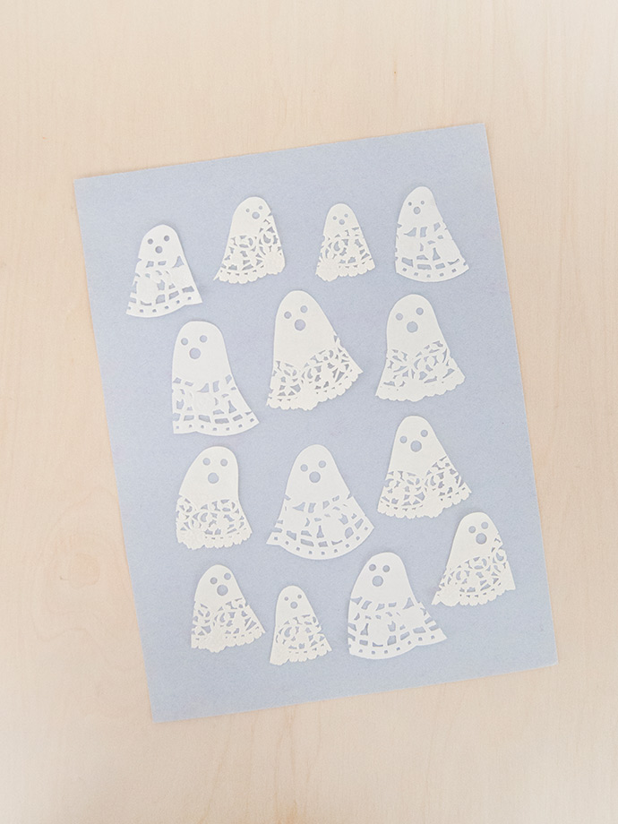 Schneiden Sie eine Geisterform aus einem Papier, so dass die untere Kante des Geistes die Spitzenkante des Döils ist.
