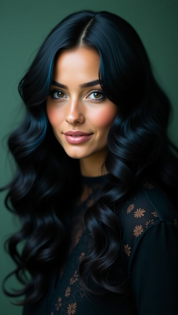 - Beschreibung: Tiefe, glänzende Wellen mit einem mysteriösen, mondhellen Glanz, oft in dunkleren oder juwelenfarbenen Haarfarben wie Marine oder Emerald.