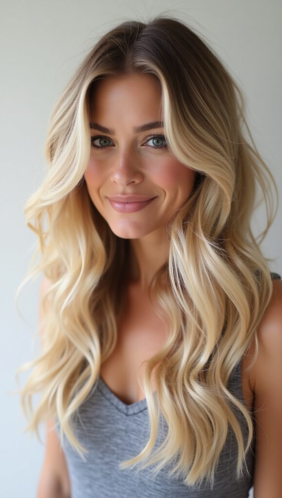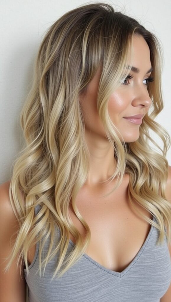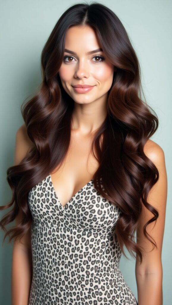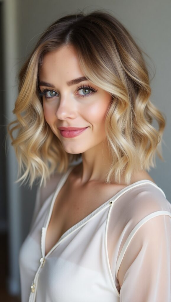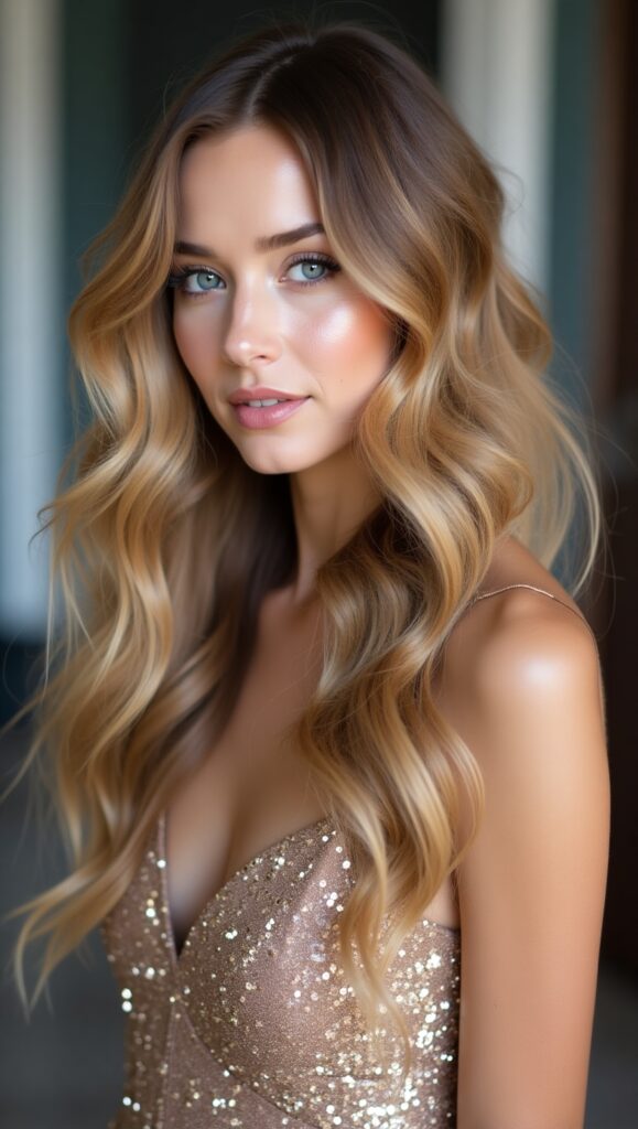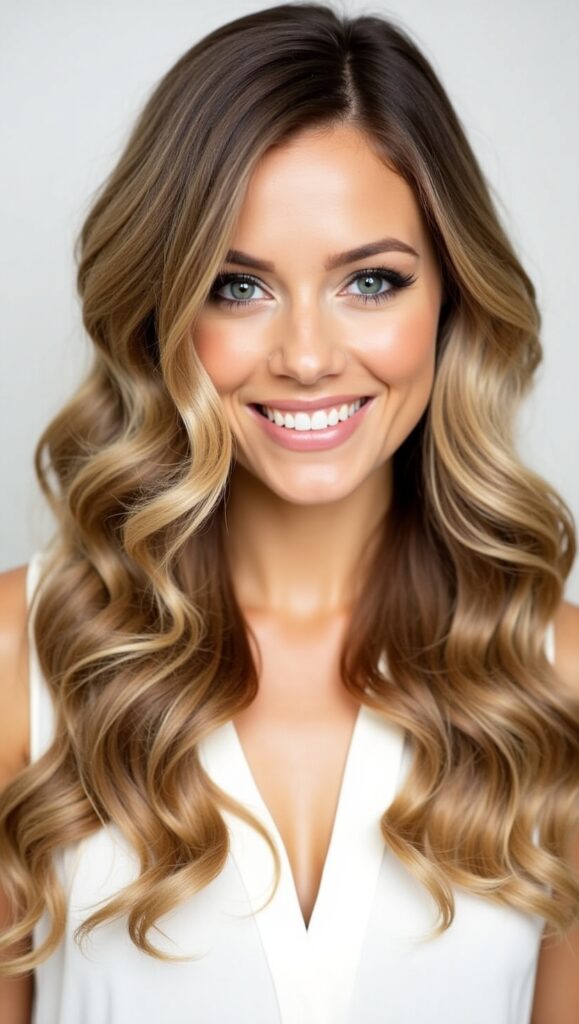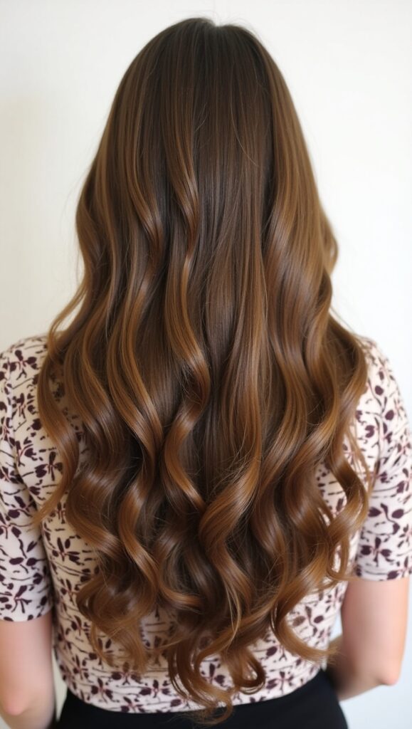 - Styling -Tipps: Verwenden Sie einen 1-Zoll-Lockenstab, wickeln Sie locker Abschnitte und bürsten Sie die Locken für Weichheit aus. Tragen Sie ein helles Haltenhaarspray und ein Glanzserum auf, um das Leuchten zu verbessern.