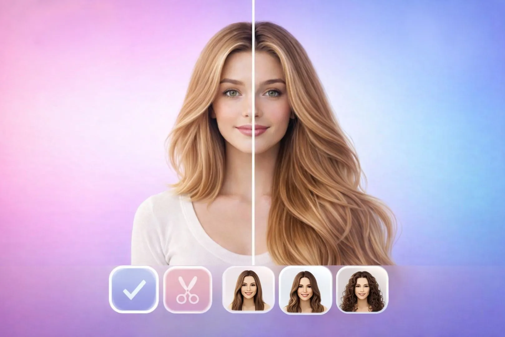 Sind Sie bereit, sich mit langen Haaren zu sehen? Laden Sie Ihr Foto hoch und probieren Sie in Sekundenschnelle fließende Schichten, Meerjungfrauenwellen oder eine glatte Länge aus.