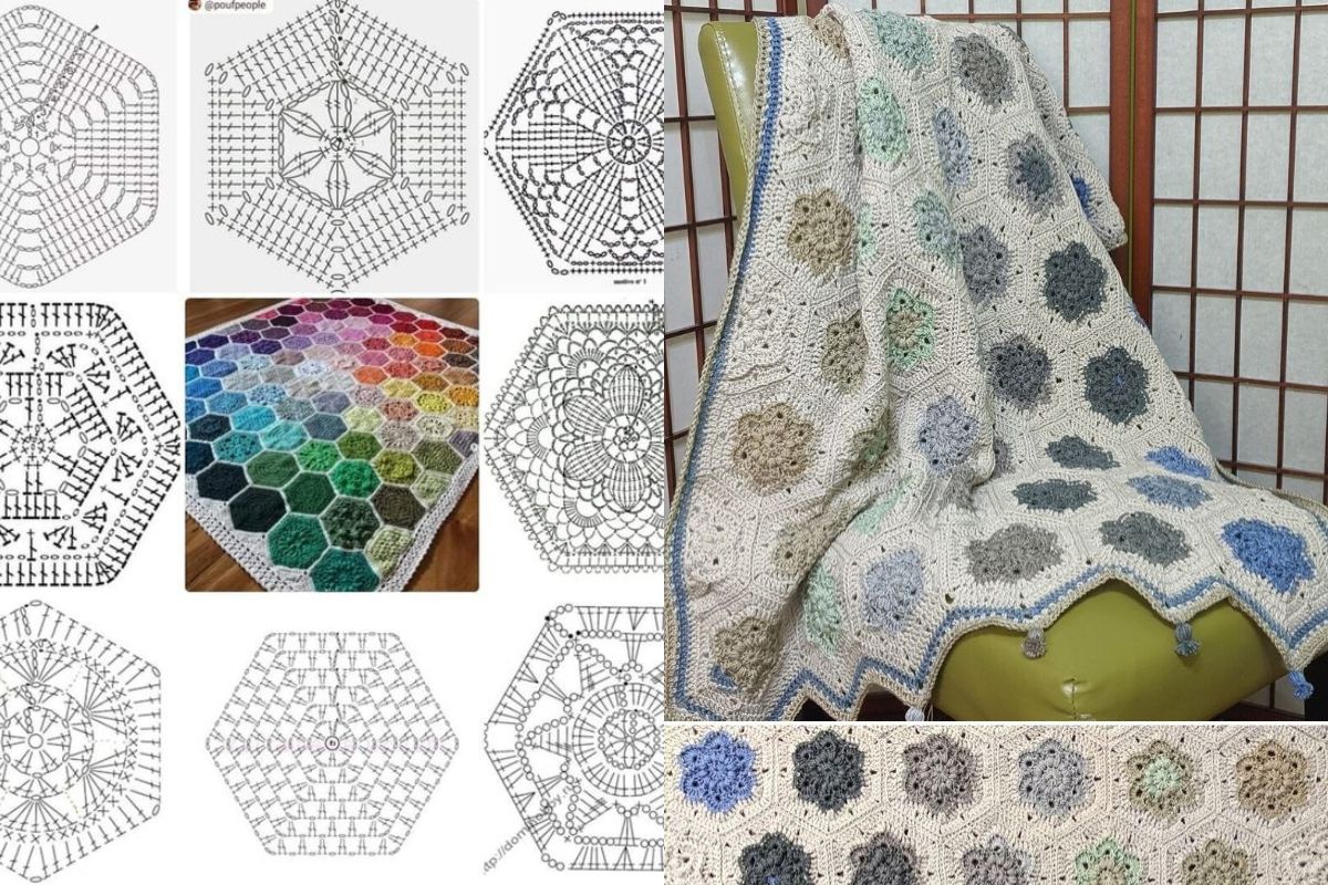 Entdecken Sie kreative Hexagon Crochet Decken Ideen! Erforschen Sie von Oma -Sechse- und Ombre -Designs schöne Muster, Montage -Tipps und Farbinspirationen für Ihr nächstes Projekt!