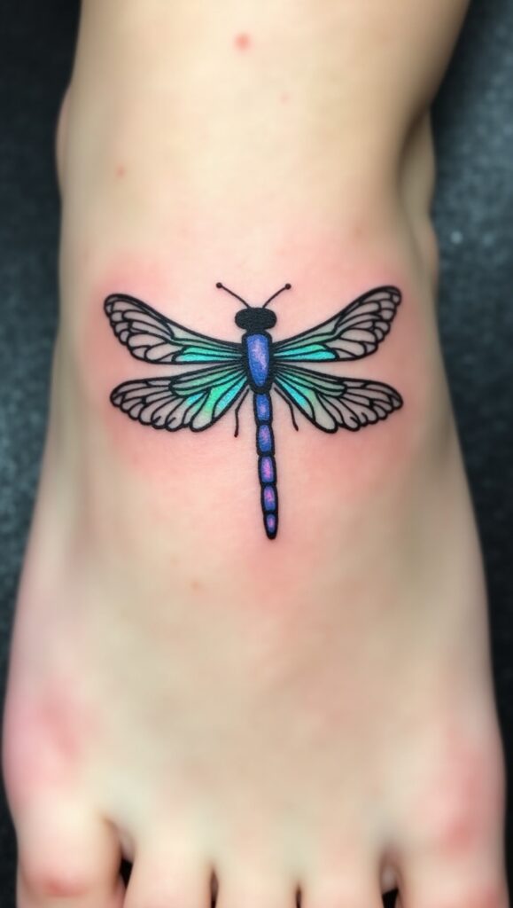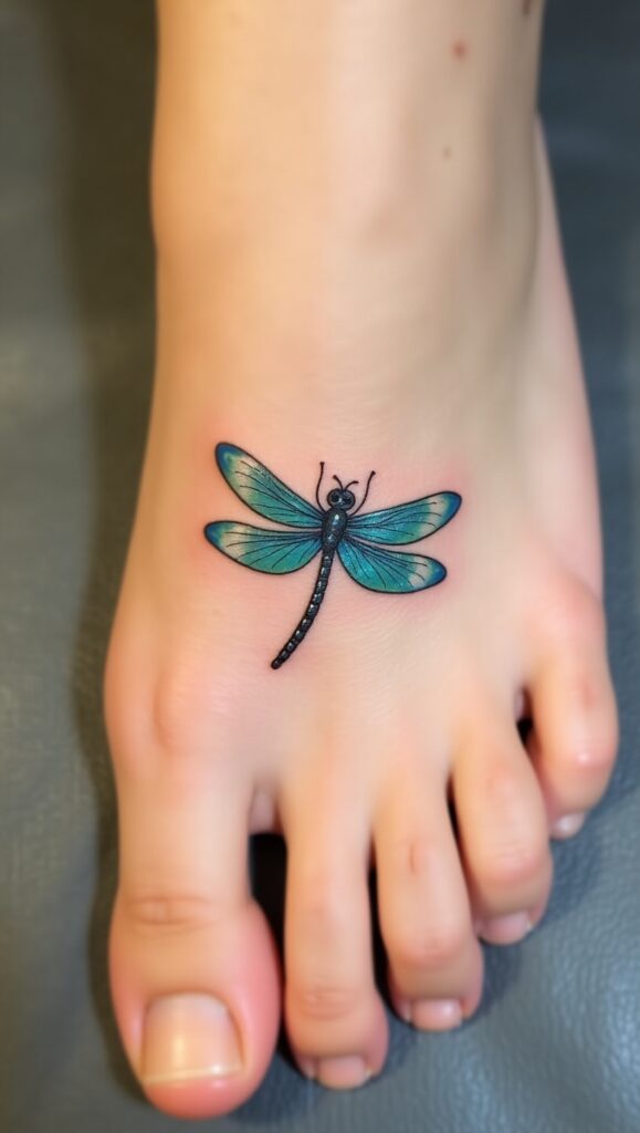 • Warum ist es heiß: Libellen symbolisieren Anpassungsfähigkeit, und Fußtattoos sind ein schrulliger, zurückhaltender Trend.