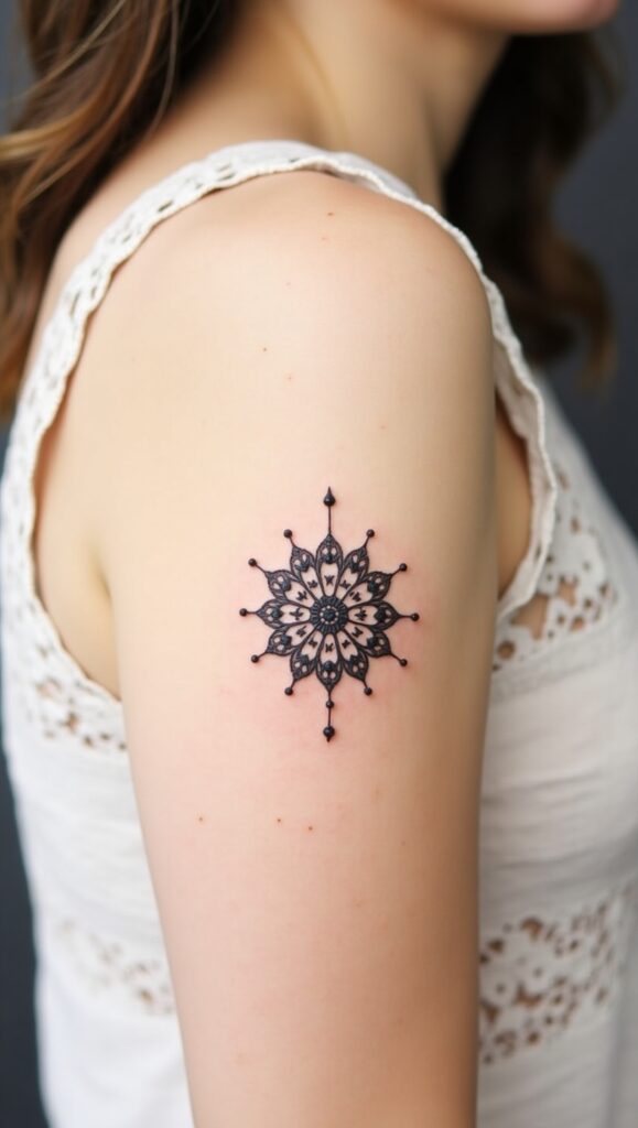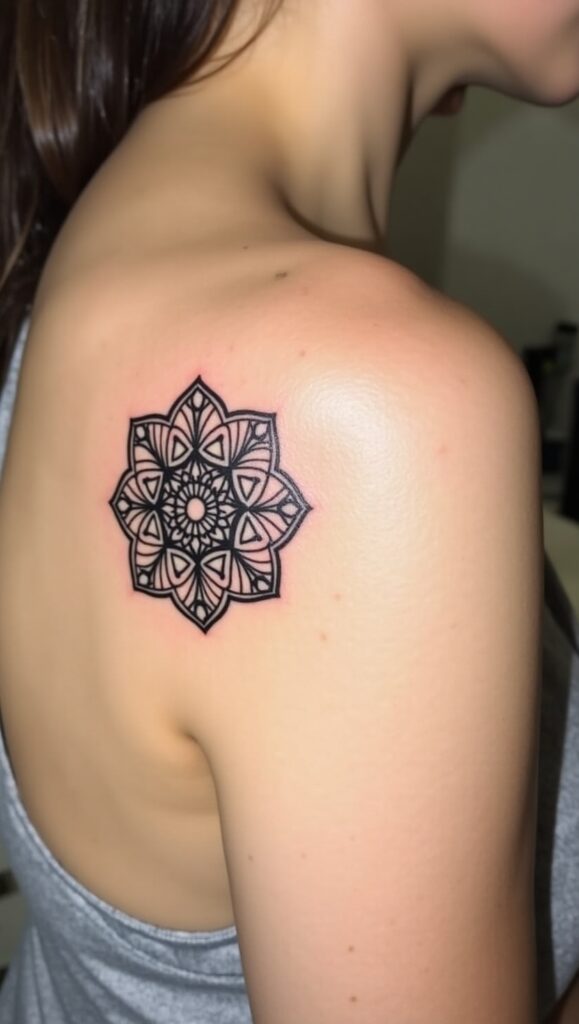• Warum ist es heiß: Mandalas dreht sich alles um Balance und Schönheit, und die Schulter rahmen sie perfekt um.