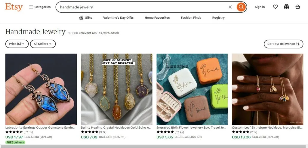 Kunsthandwerklicher Schmuck bleibt eine der profitabelsten Kategorien von Etsy, wobei die Top-Verkäufer monatlich 5.000 bis 7.000 US-Dollar verdienen. Konzentrieren Sie sich auf die Herstellung einzigartiger Stücke aus hochwertigen Materialien wie Sterlingsilber, goldgefüllten Komponenten oder natürlichen Edelsteinen.