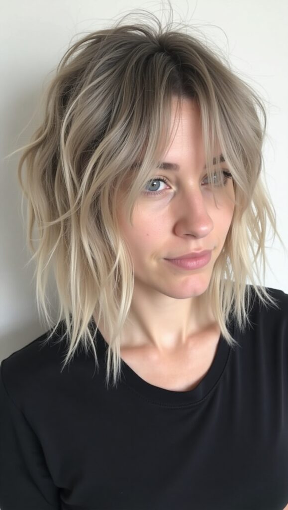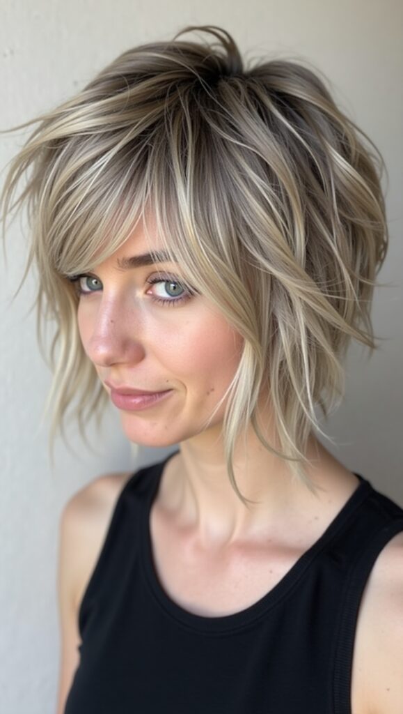 - Details: Es verfügt über Mikro -Pony und abgehackte Schichten für einen verspielten, voluminösen Look, ideal für gerade oder welliges Haar, das oft mit lebendigen Farben oder texturisierenden Produkten verbessert wird.